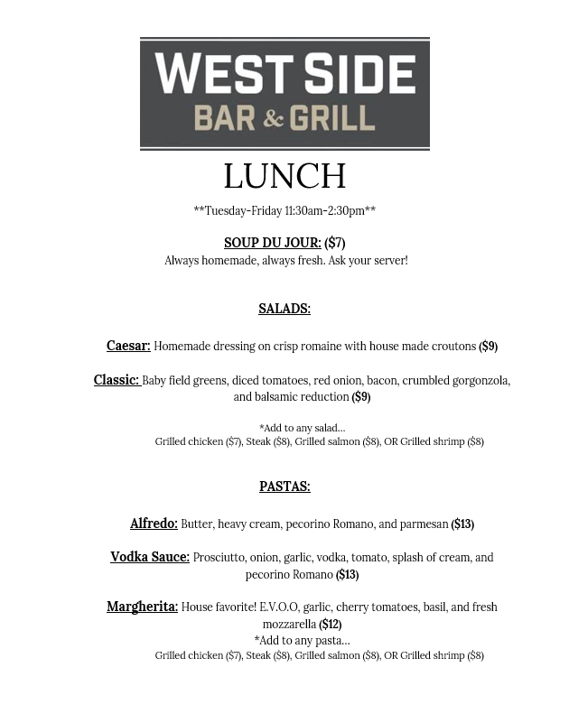 With a focus on freshness and flavor, West Side Bar & Grill promises an unforgettable dining experience that keeps patrons coming back for more!